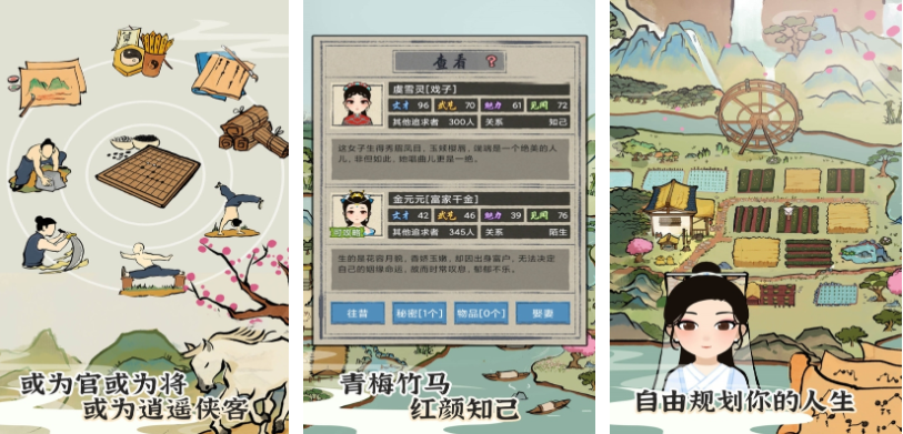 在本作中玩家也可尝试与古代江南角色切换人生,可沉浸式进入如梦似幻的江南世界规划人生,浓墨重彩的古代背景呈现充满一种复古感,为官为将的人生模拟体验也是人生类手游标配,超多古代世界的NPC也会成为你的朋友共同冒险,古色古香的江南小镇环境也足以帮大家享受到江南人生,自由规划古代人生走向的游戏机制也是亮点。