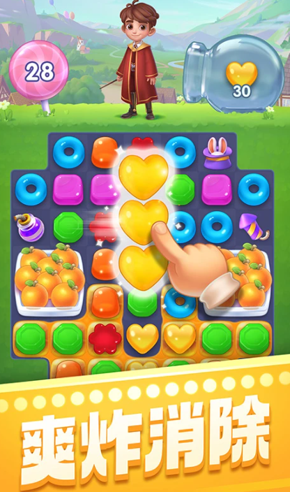 基于经典的三消规则,玩家只需将三个相同图案连成一线即可消除,上手门槛低。游戏融入冒险剧情,每个章节都有对应的故事发展,提升代入感。特别加入了战斗机制,通过消除元素对战怪物,完成任务后可领取丰厚奖励。海量关卡搭配多样挑战模式,让体验更具变化性。