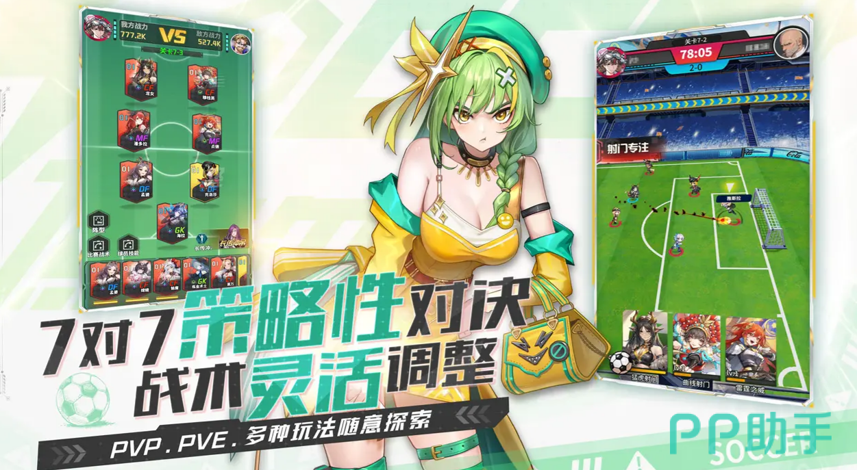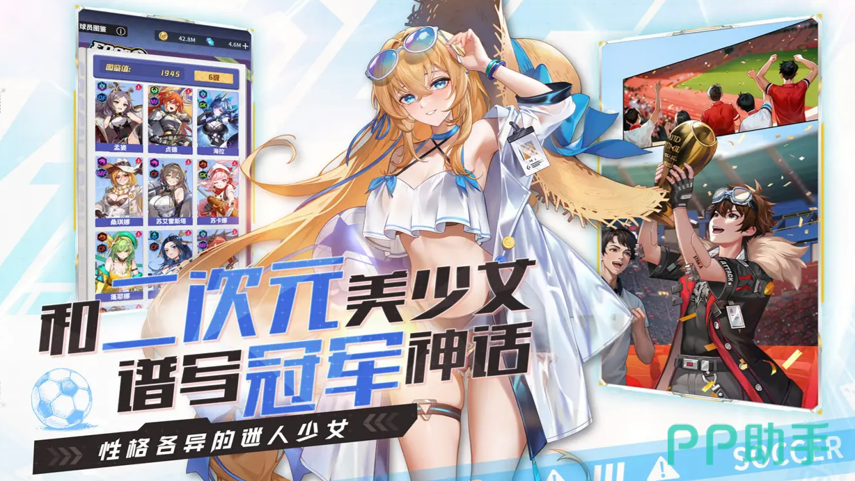 本作在美术表现上展现出高水平的二次元风格,画面精致细腻,角色设计极具吸引力。游戏中不仅有众多高颜值的美少女球员登场,还巧妙融合了足球竞技与经营管理机制,为喜爱策略类卡牌玩法的用户提供了新鲜的沉浸式体验。