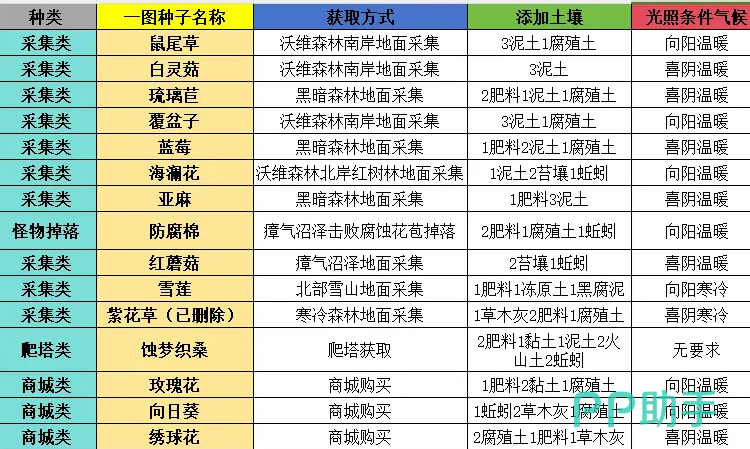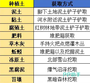 要达成完美种植,核心在于为作物提供完全匹配的生长环境。建议使用四格种植箱或蘑菇箱进行培育。首先从配土开始,不同植物对土壤的要求各异,以下是常见作物对应的土壤类型参考图,务必根据作物选择正确的配方。