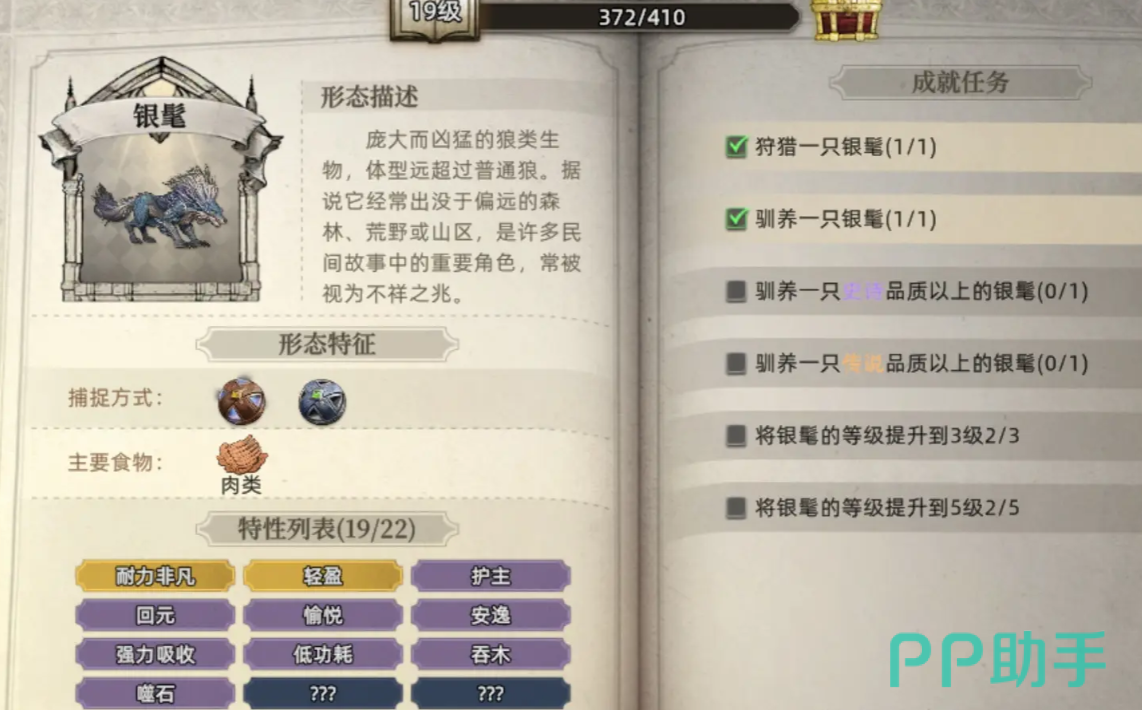 银髦是一种体型远超普通野狼的凶猛生物,常出没于荒野与高山区域,在民间传说中被视为不祥征兆。其战斗特性为提升使用者10%冰属性伤害,但会同步增加对火属性攻击的受创程度。因此,在面对火系敌人时应谨慎启用,合理搭配阵容才能最大化其输出潜力。