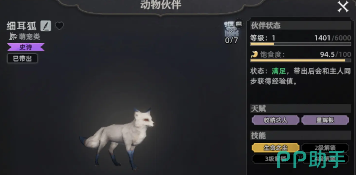 细尾狐以其独特的治疗技能成为生存型玩家的首选。当角色生命值濒临危险时,它可触发自动回血效果,有效延长战斗续航。随着培养等级提升,细尾狐还将解锁滑翔技能,不仅增强战场机动性,也在探索地图时提供便利,是兼具实用性与功能性的一只高性价比战宠。