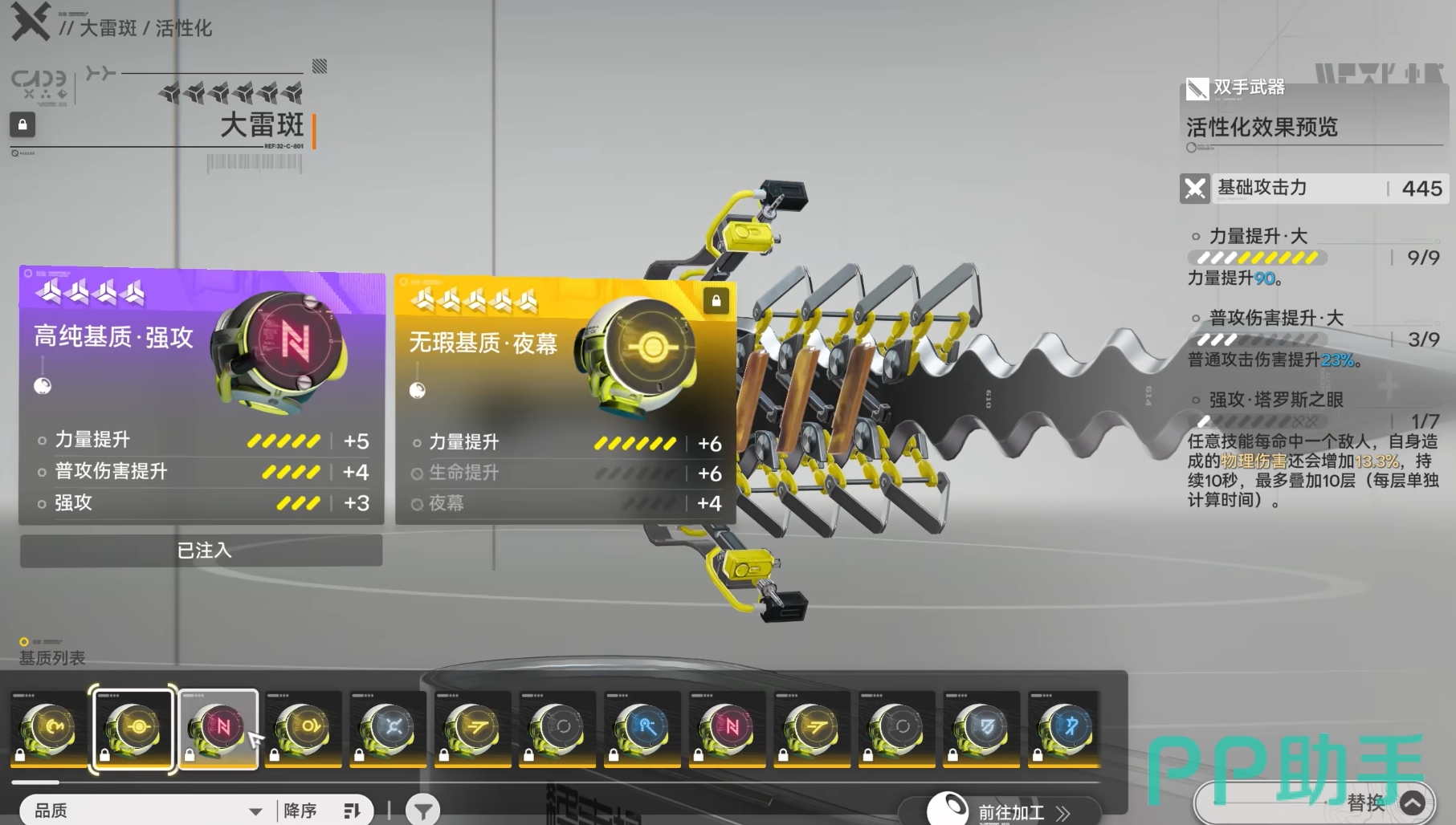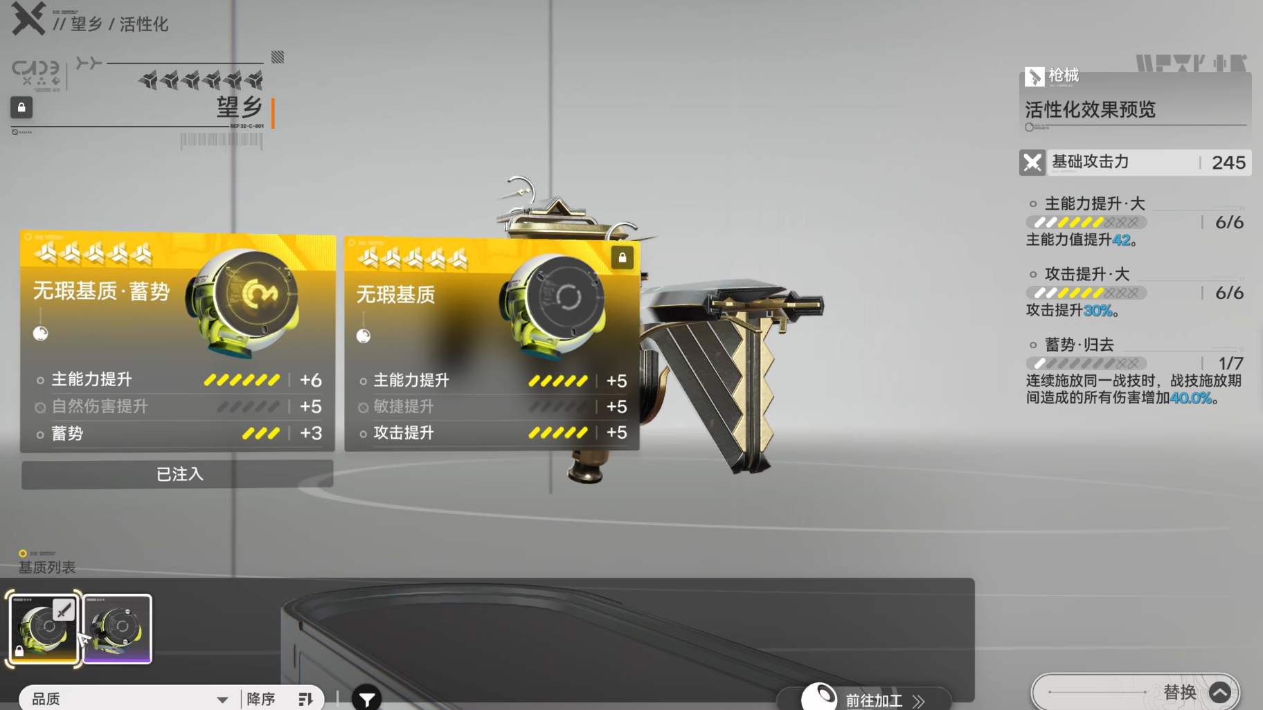 每类基质都有一个效果词条范围,且效果加成等级也会在一定数值范围内浮动,一旦刷出后,效果词条的类型和加成等级都会直接固定,所以玩家们在为武器挑选基质时,最好选那些词条效果与武器副属性一致的基质来进行搭配,让武器的每一条副词条都能获得强化。此外,武器副属性词条都有一个最大效果等级,不管基质带来的效果加成等级有多高,搭配后都不会让副词条的效果超过武器设定好的最大效果等级,这也意味着玩家们在进行武器培养时,让一把武器毕业的标准就是将它的等级提升至最高,同时也要保证它所有副属性词条的效果等级在基质的帮助下都能达到最大值。