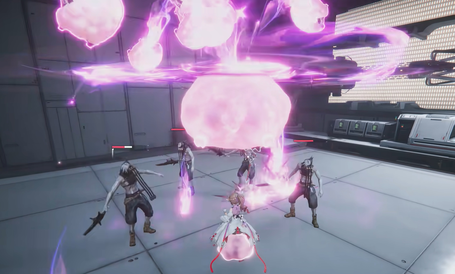 游戏还在战斗中加入了反应机制,物理角色可通过对敌人施加破防值,打出不同的物理异常反应,而能为敌人施加不同属性附着的角色,则会根据附着属性的不同,让敌人陷入多种不同的法术异常效果中。同时,小队中的四名角色会一同在场上对敌人进行攻击,除了玩家所操控的干员外,其他干员将由人机AI控制,并且能通过连携技等方法来更换操作对象,整体的战斗玩法有着很独特的流畅感,连带着也会让玩家享受到十分舒服的操作手感。