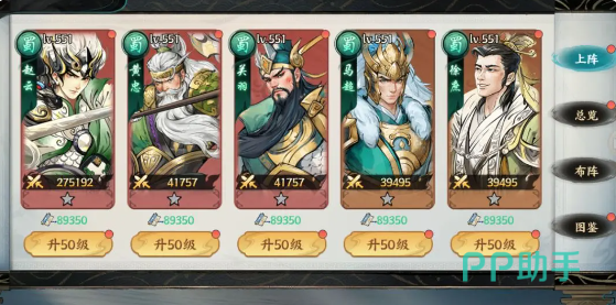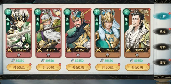 赵云+黄忠+关羽+马超+徐庶这就是蜀国队的开荒阵容,核心的优势就在于触发对手的阵亡,然后有效形成降临被动。关羽黄忠以及赵云的特性,都需要这个条件才能够最大化。马超以及徐庶就能够有效补充眩晕硬控,控场的能力还是很不错的。但需要注意的是,蜀国对于将领的培养本身就会有一些要求,需要投入更多的资源才能够有效提升战斗力,更适合于愿意长时间培养的主攻,并不适合那些白嫖玩家。