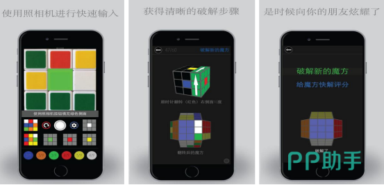 从玩法和画面上来看,和其他的魔方游戏唯一不同的就是需要利用手机的照相机,将魔方全部拍摄下来之后,就可以呈现出具体的魔方快捷方式,甚至也可通过手动输入的方式,让自己也了解魔方还原时的整个过程和步骤。其次有12个特定的破解模式,都可任由大家随意选择,屏幕上都有相应的指令,比如有上下左右的箭头等等,大家只要按照这些箭头点击屏幕,即可完成挑战。