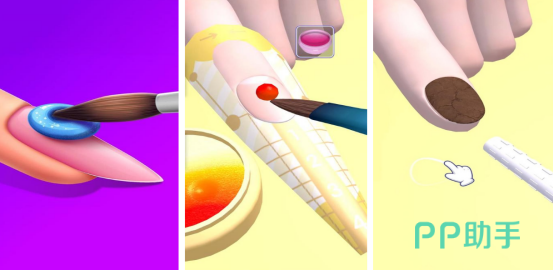 化身为美甲师,专门为各种爱美的客户制作各种漂亮的美甲图案,每个关卡中都有不同的美甲工具,比如有指甲刀,或者是色彩鲜艳的指甲油等等。简单的操作方式,开始后,在手机屏幕上会看到不同类型的指甲,有的是又尖又长,有的是圆形的,大家可尽情发挥自己的审美,为其涂上漂亮的指甲油,可以选择磨砂类型的指甲油,又可以选择各种栩栩如生的图案。