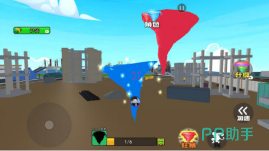 当龙卷风来临时城市中的各种物品都会被席卷一空,屏幕上都有相应的控制按键,比如左侧有合理走位,而右侧有加速的操控按钮,通过点击屏幕的方式控制其中的龙卷风以很快的速度将所有障碍物全部吞噬,比如高楼大厦以及行人车辆等等。整体具有极强的解压感,还支持多人共同实时对抗,当到达一个等级之后,就会让自己的龙卷风变得越来越大。