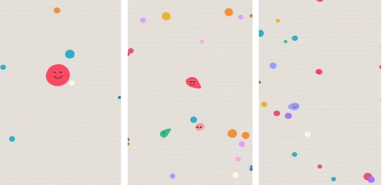 从玩法和画面上来看,和贪吃蛇大作战特别相似,开局只是一个小小的红色圆点儿。所有的成长路线都是需要通过靠吞噬的方式,让自己变得越来越大,比如在同一个游戏屏幕中,会看到色彩缤纷的小圆点儿,只有逐渐吞噬比自己小的圆点之后才会让自己的体积变得越来越大,当体型越大时,就会看到其中特别清晰的笑脸儿,还能成为真正的巨无霸。