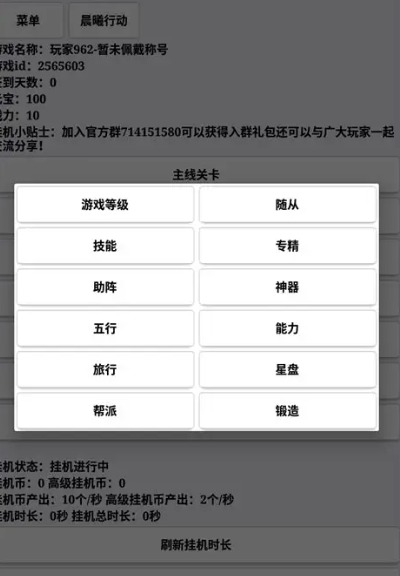 问剑长生主打修仙挂机玩法,游戏里的修仙体系很完整,从基础的修炼到炼制丹药,打造法宝都有涉及,玩家创建角色后,不用频繁操作,角色会自动修炼,挑战副本,在游戏过程中,玩家能获得各种修仙材料,用来提升自身修为,还能遇到修仙路上的伙伴,一起探索神秘的修仙秘境,感受长生修仙的独特魅力,适合喜欢沉浸式修仙体验的玩家。