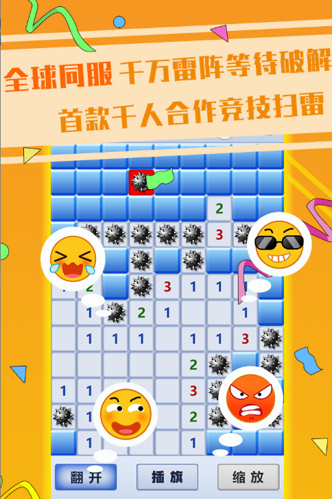 支持多人同时在线进行pk,可以与其他的玩家进行比赛,看谁扫雷更加精准,用时更短。还可以在扫雷的过程中与其他人进行视频,这样才能够更好的交流扫雷的方式方法以及过程,游戏支持多种操作,还可以缩放、双击以及其他的一些设计,游戏的画面还支持自定义的模式,玩家可以随意更换游戏界面的颜色。