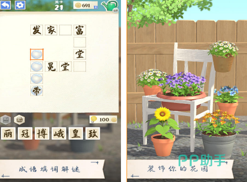 不仅可经营着奶奶的花园,让每个花朵都能顺利的开放,感受他们超高的颜值,也是放松身心非常好的选择。因为它还加入了成语接龙这种玩法,通过每次顺利闯关获得的奖励以后,就能拥有这水滴,用来浇灌里面的各种花朵,同时还可使用超多的装饰品,完成对花园的打造。既智力又休闲,可以让花园拥有着强大的生命力。