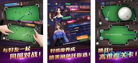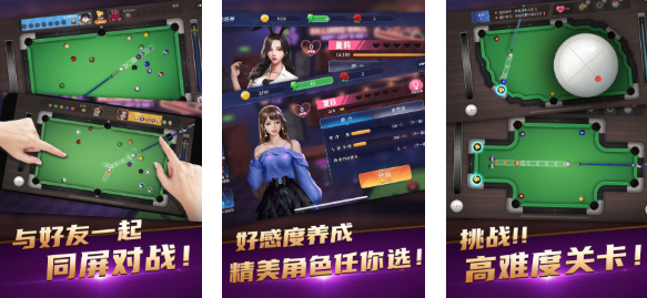 这是款内存较小但玩法众多的高互动性台球对战手游,超级多的双人电竞关卡让台球魅力得到释放,场景刻画跟特效的塑造都很复古也更有一种代入感,沉浸式斯诺克对战环境展现出台球类手游的魅力,球杆与桌球的真实碰撞反馈和经典音效也是特色,十分经典的台球对战规则也令游戏进度更快,采用回合制的台球PK性质大幅度提高了互动性。