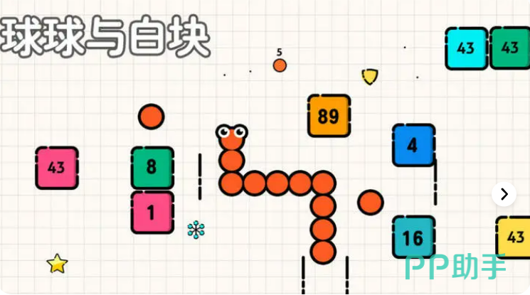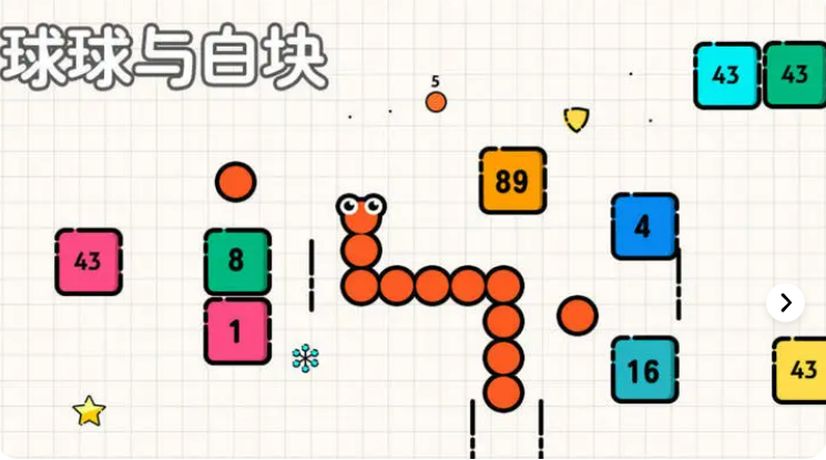 将球球与贪吃蛇这两种元素结合起来,玩家要操控自己的小球吃掉更多的圆形白块,然后使自己的小舌变得更加的长,球球所组成的小蛇身体让整个小蛇看起来更加的灵动,需要去吃掉更多的白块,才能够使小蛇的身体变得更长,在游戏的画面中还会设计各种带有不同数字的方块,如果小蛇碰到这些方块将会增加身体上的球球数量。