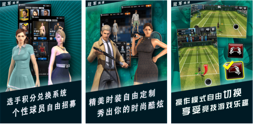 冠军网球是十分养眼的一款免费网球比赛类手游,超级多的时装系统会让网球明星形象更多变,超有代入感的网球对抗赛事也是本作的最大特色,积分兑换系统超级良心呈现出的可玩性极高,还可自定义定制球拍让玩家尽情享受网球的乐趣,甚至可切换横竖屏操作带来的惊喜也是源源不断,屏幕前列位网球高手可在本作中尽情挑战强大对手,形形色色的比赛项目无疑展现出网球游戏魅力。