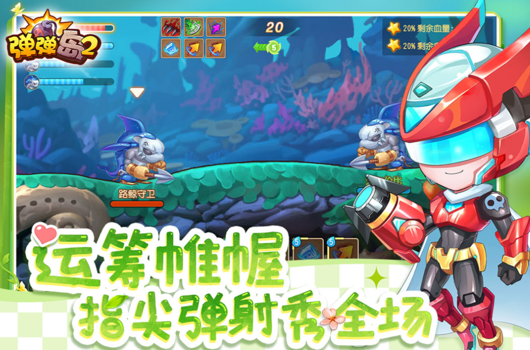 弹弹岛2是款气氛治愈且弹射效果完美的互动电竞手游,采用双人互相弹射武器的回合战斗快感,治愈系的背景融合超可爱的主角观赏性十足,新生代的弹射互动玩法休闲性自然也拉满,抛物线策略射击的PK规则绝对的公平公正,可自由邂逅小伙伴陪你一起弹射战斗,还有宠物培养跟武器升级等特殊的系统增加趣味性,而且这款佳作同时注重微操和策略性。