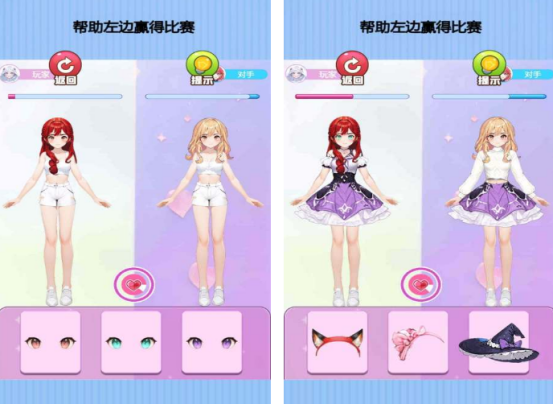 这是一款专注于服饰搭配的休闲游戏,玩家将面对两位风格各异的虚拟角色,通过更换发型、服装和配饰来打造理想造型。目标是在视觉评比中胜出,展现你的审美能力。操作方式非常直观,只需点击屏幕即可完成换装,适合所有年龄段的用户轻松参与。