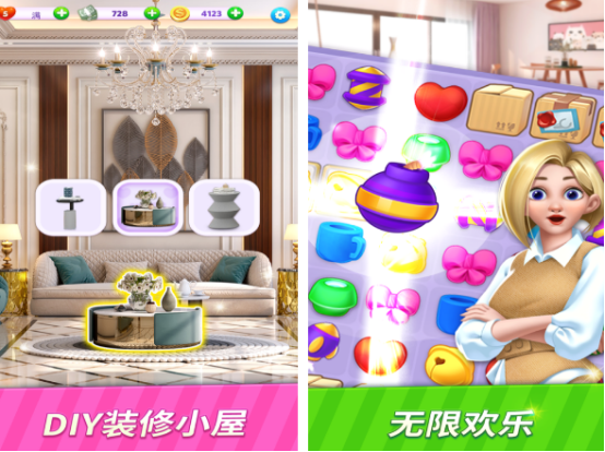 以卡通画风呈现的家居设计手游,提供多样化的装修元素,支持现代简约、欧式风情、地中海等多种风格自由搭配。游戏中包含公寓、别墅、酒店等多种房型,结合三消玩法推进进度,通关后可解锁更多家具与装饰物品,让玩家在解谜的同时享受布置空间的乐趣。