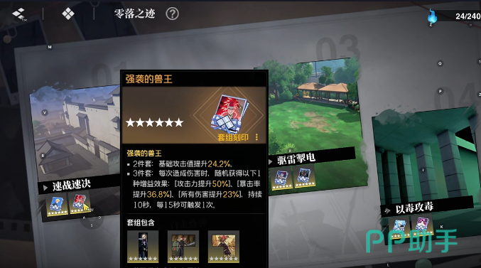 强袭的兽王刻印套装主要是以野性狂攻作为核心的理念,会有层层递进的属性加成。从凶猛到霸道的三阶进化二件套时,基础攻击就可以直接提升24.2%让角色在输出时更有优势。三件套可以触发野性突袭的效果,每次造成伤害时还会提升36.8%的暴击率以及50%的攻击率,所有的伤害都会提升23%。这种循环的机制让角色在战斗的过程中就好像是暴走的兽王一样,还可以不断的撕裂输出上限。更值得关注的是获取之后就可以直接生成三条主属性,在55级之后还可以额外的解锁一条属性。