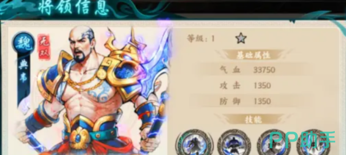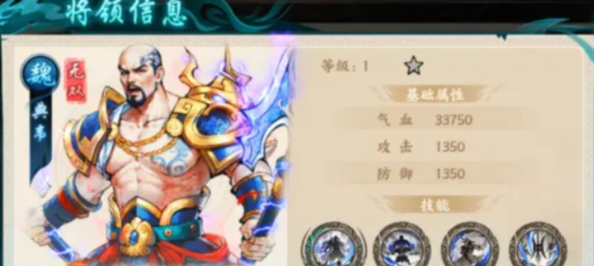 许褚是一个很适合新玩家使用的前排盾兵。他不但有很强的防御力,而且可以利用怒气技提高自身的防御力,并且对周围的敌人造成寒冰效果,使敌人的攻击力下降16%。该技能的优点是能有效地减少队友受到的伤害,并且会使敌方的输出能力大大降低。许褚的觉醒技能激活之后,怒气技造成的伤害会转化成自己的护盾,而且护盾可以叠加,提高了许褚的生存能力。再加上他被动技能的加成,在敌人身上带有寒冰效果的时候,许褚可以得到一个持续8秒的护盾,从而提高他的生存能力。