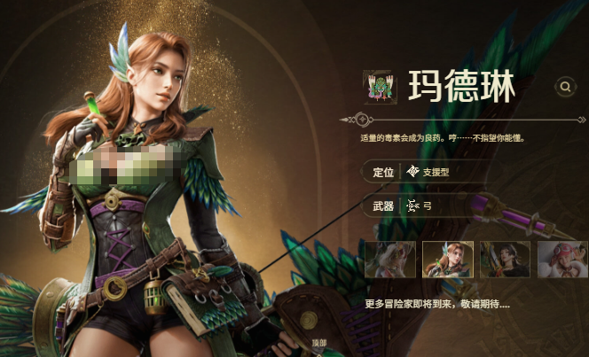 另一位人类支援型冒险家弥多律同样用弓,但风格和玛德琳完全不同,她的设定里带着表演家的特质,连攻击动作都透着韵律感,战斗的时候更像是在用弓术为队友伴奏,她的核心能力不是毒而是即时支援,这种能力在对付那些爱放异常攻击的怪物时简直是救命稻草,比如遇到会喷麻痹液的飞虫,或者能让玩家眩晕的猛犸兽,有弥多律在团队就不用频繁吃药,能把更多精力放在输出上。