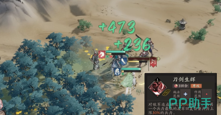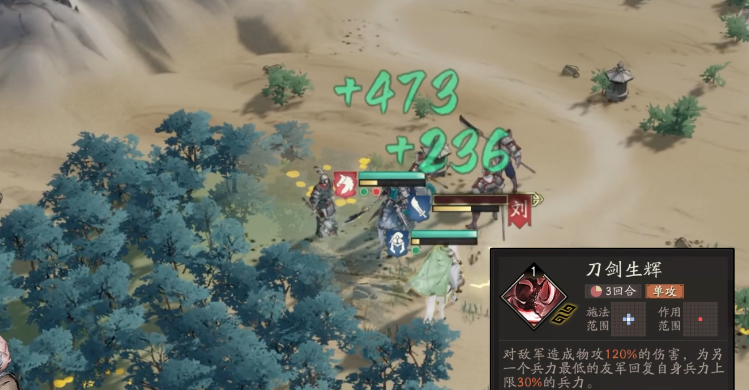 刘备在主动技能上面有一个刀剑生辉的效果,在怒气时数值积攒足之后,还可以为我方血量比较低的两名队友,带来15%的生命值恢复效果,此时除了生命恢复之外,护盾的能力,可以吸收到相当于刘备120%防御数值上面的伤害效果,这个技能的话,相当于是大家可以参与一些更强势的阵容里面可以用到的效果,一般来说,刘备这样一个技能下去的话,不仅可以回到小部分的血量,还可以套一个超高的防御护盾,直接把全体的血量都达到了一个安全线,这样的话如果大家就算是面对吕布或者是赵云这类输出极高的角色也是有应对能力的,后续的话还可以搭配其他主控角色来进行出手反杀。