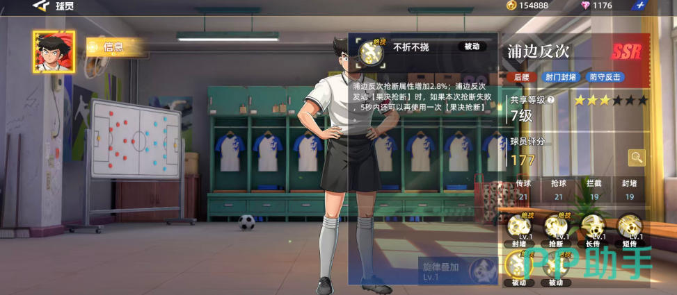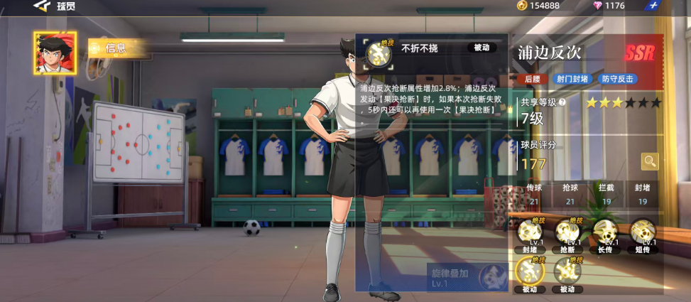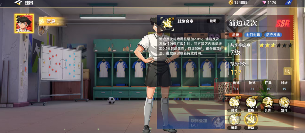 浦边反次是游戏当中比较罕见的一个SSR红卡,使用这个球员的时候要注意只能放在队伍后腰的位置上面用,他的能力上面基本都是偏向于这方面的能力,而且在射门封堵效果上面也是很不错的,还有防守反击的能力也是可以用得上的,所以组队的情况也比较多,如果新手有招募到浦边反次,前期一键上阵选择到这位球员的概率是很大的,目前浦边反次的球员评分达到了177,其实很多的SSR品质角色的基础评分都是在174左右,而有几分之差其实也说明了这个球员有部分长处是可以用到的。