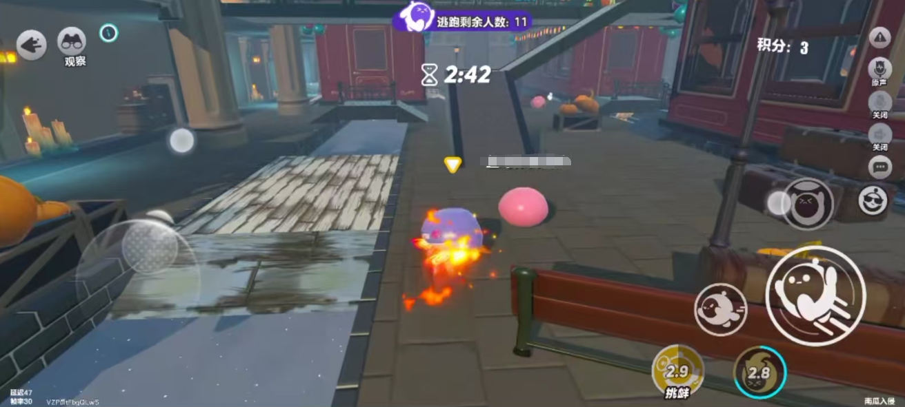 还有一个很适合隐藏的地方,那就是火车,车头这里有一大堆的物品。玩家可以跟着指引,然后一步一步的跳上去,马上就可以抵达围墙的位置。需要注意的是,右边的窗户并不是真的,而且要是被南瓜发现,那真的是没有地方躲藏,所以只能选择左边。走到最里面的柱子,然后做一个倒立的动作,那相当于直接隐身,南瓜根本就看不到你。最后也要提醒大家,在餐厅边上有一个大斜坡这里就有一个深棕色的木板,看上去好像没什么区别,但是踩上去就会直接掉下去。