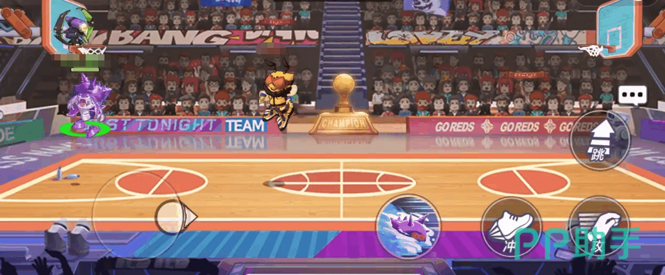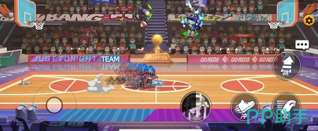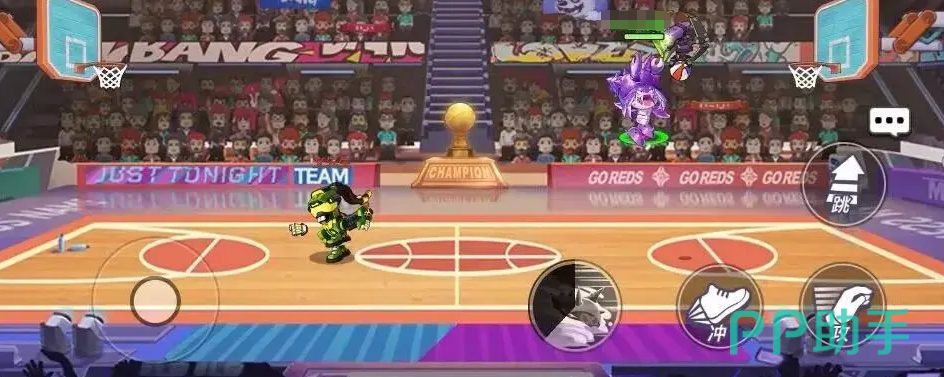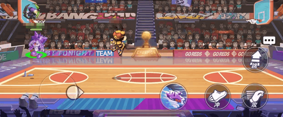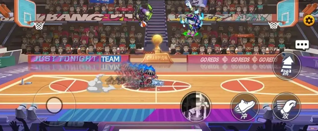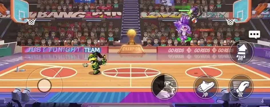 游戏中角色的移动由左侧虚拟摇杆控制,不设专属加速按键,需通过冲刺功能实现快速位移。跳跃操作分为两种:轻触为短跳,连续点击或长按则触发高跳,适用于封堵高空传球或干扰投篮动作。值得注意的是,当角色持球状态下无法连续执行两次高跳动作。