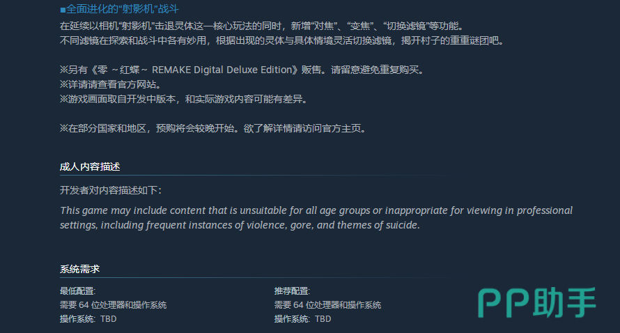 许多玩家对这款剧情驱动的冒险类游戏充满期待,其丰富的故事情节和沉浸式体验吸引了大量爱好者。本文将重点为大家解析零红蝶重制版配置要求,帮助大家在游玩前做好充分准备。合理的硬件搭配不仅能提升运行流畅度,还能有效避免卡顿、闪退等问题,接下来就让我们一起了解具体的设备需求。