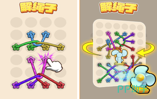 下载游戏之后,屏幕上有几根颜色不同的绳子,绳子的两端都会有固定的节点。玩家需要把相同颜色的两端放在对应的节点上,还需要保证中间没有缠绕。规则真的比较简单,一看之后就可以学会,因此初期就能够上手。但进入到后期之后,难度会增加,绳子缠绕的很乱。在解开的一瞬间也会拥有较好的解压感,很适合在休闲的时候玩。