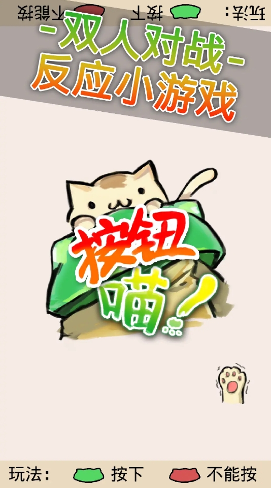 按绿不按红是《按钮喵》唯一的规则,各位在比拼时需时刻注意按钮的颜色,并在短时间内决定是否要按,若是对手做出正确决定的速度比自己快太多,那很可能会导致自己落败。要是双人都在同一时间进行了正确的选择,则游戏会继续,直到有一方出现失误或速度比另一方慢为止,玩法十分易懂而且非常的好理解,体验时往往也能让对局在几秒内就结束,是调动气氛和拉近距离的好作品。