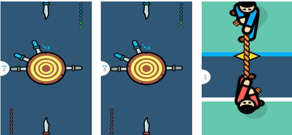 本作是双人同屏游戏中上手最快的一款同屏电竞类佳作,竞技元素单一且趣味性不俗让同屏游戏粉丝着迷,两个玩家要比拼手速不断点击屏幕让自己膨胀,通过碰撞互动顶对方的方式电竞还是蛮有意思的,红蓝的小气球配色看上去可爱生动,游戏进度很快基本上几秒就能将对手击败,考验手速的双人同屏竞技机制也很有新意。