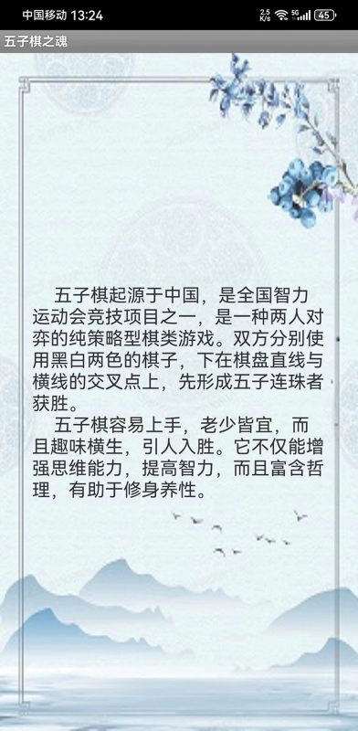 作为经典的五子棋对战类型的游戏,目前支持人机对战,也支持双人pk。所提供的难度各不相同,要说该游戏的操作非常的简单,规则也十分清晰。玩家在体验的时候可以根据自身的情况先合理的设置,另外在整个游戏当中涉及到连珠规则的训练。玩家此时在选择体验该游戏的时候也需要逐步的增强策略性。对于ai来说,他往往会采用不同的棋风,这样的话能够有效的提高老年人对局势的判断。
