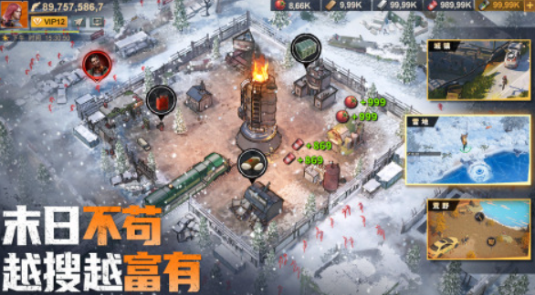 无尽冬日以冰雪末世为背景,核心循环围绕资源采集、战力提升与领土扩张展开,电力是前中期发展的核心资源,所有建筑与科技升级均依赖电力产出,其次需均衡保障食物、木材、石材、钢材等基础资源,高级道具需合理规划使用,仓库等级决定被攻击时的资源保护上限,是资源管理的关键建筑。