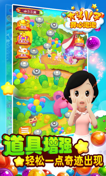 彩色的泡泡在画面上显得五颜六色,格外鲜明。大头儿子在跳跃时要尽可能的躲避所出现的所有障碍物,沿途中出现的彩色泡泡,将它们收集起来,才能够获得更高的分数。画面中还会出现小头爸爸和妈妈的角色,一家人有爱的画面,也深深触动着玩家的内心。泡泡的颜色不同,在跑酷时所能给予玩家的功能和增益效果也是完全不一样的。