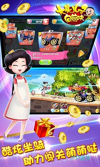 冒险的过程需要大头儿子以跳跃或者是攻击的动作成功避开关卡中所设置的所有障碍。道具种类也非常丰富,在跑道上可以进行收集,闯关的必要场景,都可以使用这些道具帮助自己化解危机,单人和双人分屏操作的方式是游戏的主要两个模式,键盘的控制,可以灵敏的操控角色改变向前闯关的位置和攻击的方式。解锁新的造型后所附带的增益技能,可以使大头儿子在移动时获得加速,攻击的力度也能提升很多。