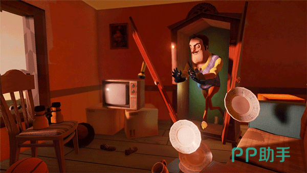 偷偷的潜入到邻居彼得森的家中将会发现很多令人发指的秘密事件,而他为了不让玩家发现他的坏事,将会在探索冒险的多个过程中捣乱,甚至还会向玩家发起进攻。设置的陷阱将会影响各个场景中线索的收集,拿起地面上的洒水壶,或者是其他的道具都可以向他扔去,与邻居之间的激烈对抗一触即发,必要时要尽快调整冒险的路线。