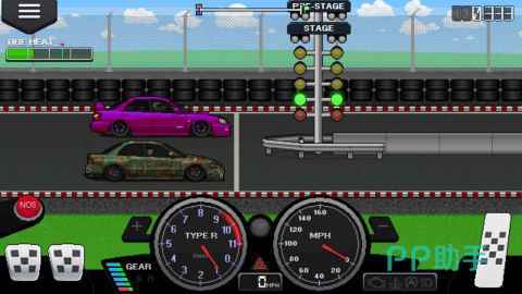 《像素赛车手》这部作品同时将像素艺术动态光影进行了相结合,塑造出了一个更为别有风味的赛车世界,而且还引入了众多黑科技的涡轮配件,包括赛车类型以及零部件等等,游戏都进行了丰腴多样的类型设计,在竞速过程中,游戏还配备更为新奇巧妙的辅助线行车系统,让玩家都能够时刻处于最佳的行车路线上。运用了横版平面式的比赛场地设置。