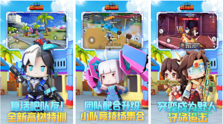 这是款成功把沙盒、枪战类玩法进行融合的满分电竞神作,吃鸡主题的电竞任务以及各相规则很容易掌握,但加入了复活队友系统可让队伍实力更强,考验团队配合的电竞机制增加爱了紧迫感,沙盒地图的概念加上萌系的角色更是特色所在,武器装备更多给方块角色搭配上看上去也是十分滑稽。