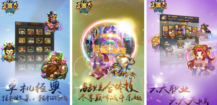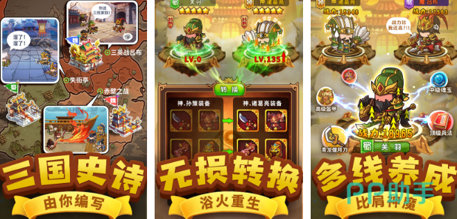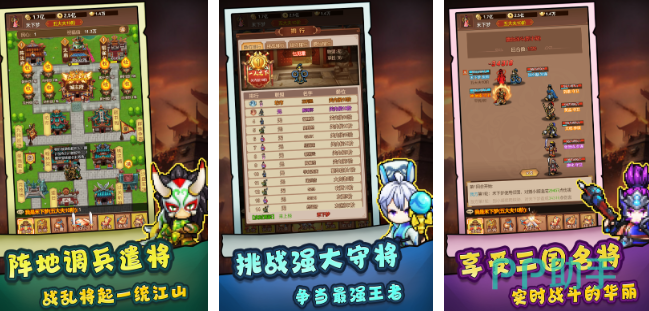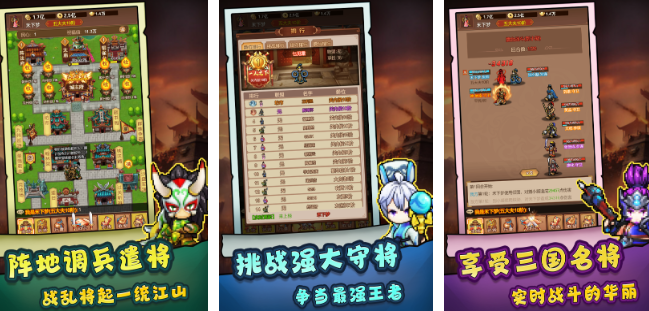 一点三国以Q版萌系风格呈现三国世界,游戏里面有着非常多的三国武将,可以供玩家进行召唤,在战斗的过程中还融入了消除玩法,可以采用消除宝石的方式激活武将的怒气值,并且不同的颜色保持对应着各种不同的效果,连续消除多种不同宝石,可以触发更加强大的大招技能,关羽的大招需特定宝石组合解锁,能造成大范围伤害。