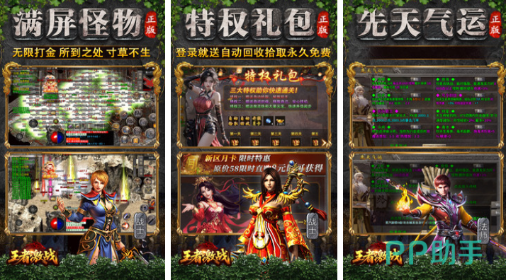 这是款有着怀旧做工并加入了全新玩法设定的传奇游戏,特色的三大职业跟超多灭世神技选择自由,而且游戏世界怪物、BOSS数量超多带来打怪升级的快感,遍地光柱的装备掉落效果给人血脉喷张之感,展现出轻松简单的升级系统也可免费解锁各类有趣的玩法,自由自在与满屏怪物战斗升级的感觉更为解压,更多的新手特权礼包也会让小白成为传奇世界强者。