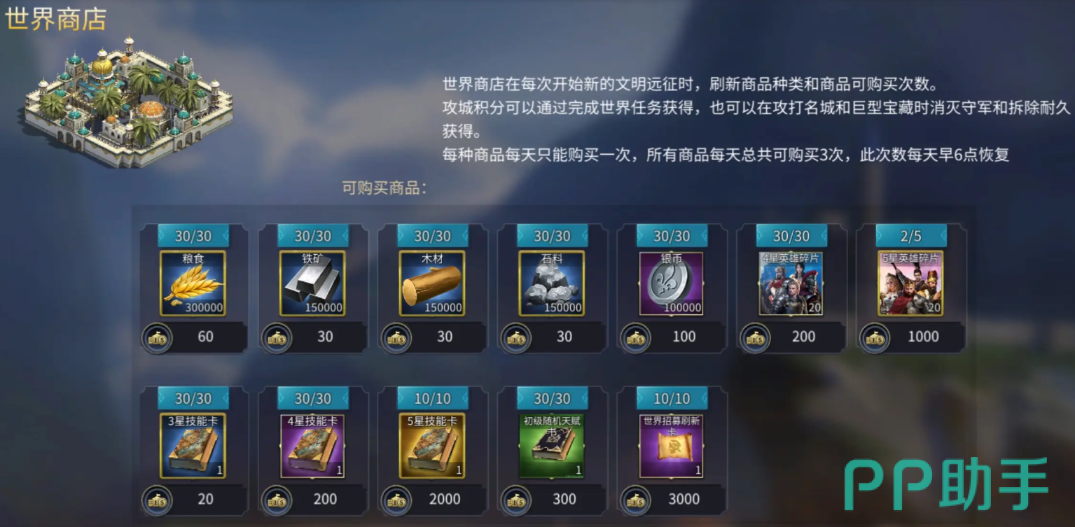 以上就是《英雄之城3》世界商店的兑换策略说明。需要注意的是,所有商品均有每日限购次数,且随远征更新而轮换,请务必密切关注商店刷新动态,及时兑换所需资源,最大化攻城积分的使用价值。