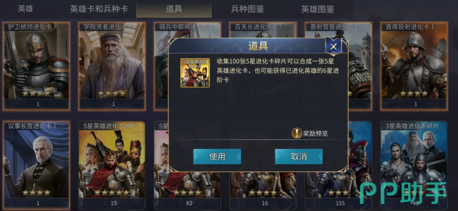 首先来解析几类关键道具的功能。4星英雄进化卡碎片是用于英雄星级提升的重要材料。当英雄等级达到上限后,需通过进化卡实现星级跃迁,例如从3星升至4星,或由4星进阶为5星。集齐100个该碎片后,可随机合成一张4星英雄的进化卡,助力特定英雄完成突破。