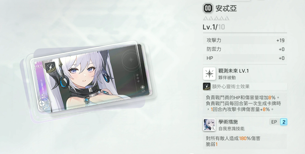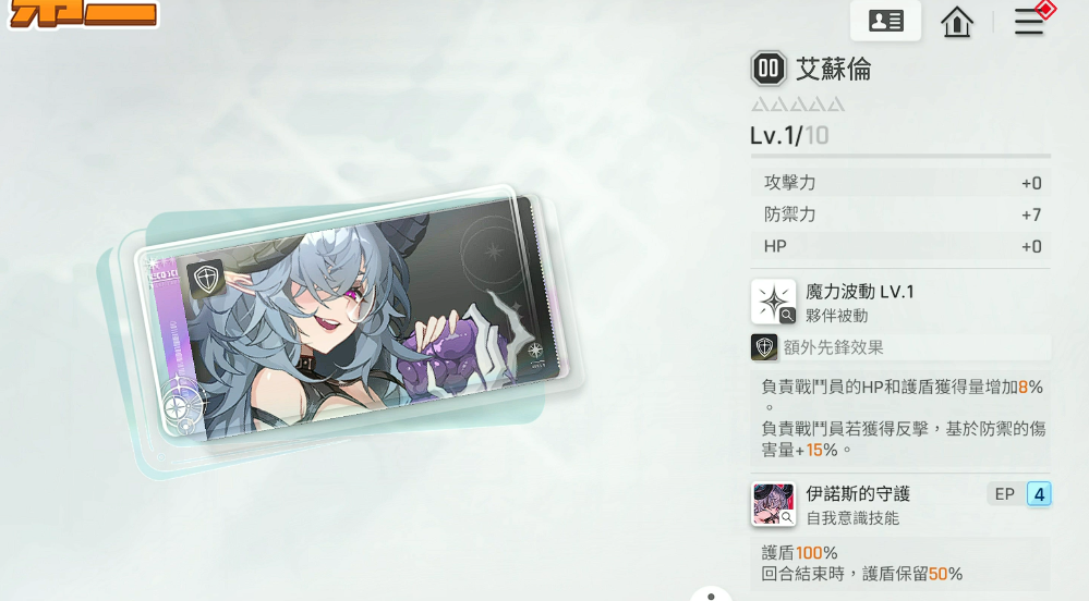 接下来是先锋艾丽娅,先锋类角色普遍拥有强大的生存能力,具备高额生命值与物理防御,主要职责为吸收伤害、保护后排输出单位。艾丽娅在战斗初始阶段可释放范围护盾,有效抵挡前期爆发伤害。她还能为全体队友提供8%的持续治疗以及一层防护护盾,双重保障机制大幅提升队伍前期容错率,尤其适合新手构建稳健阵容时使用。