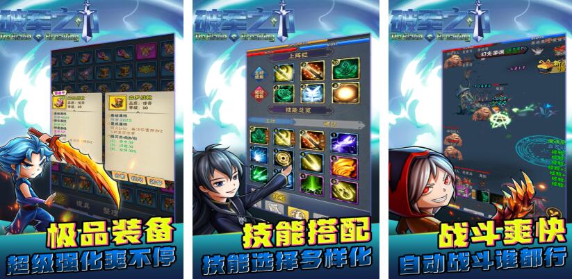 《破军之刃》主打的就是一个轻松,是一款可以挂机的休闲类手游,游戏中的极品装备都可以通过刷副本去获得,而技能搭配也多种多样,战斗的时候还可以托管给AI,让所有玩家都能够享受到游戏的快乐。玩法多样的同时,升级也没有任何阻碍,海量的武器装备库也可供玩家自由挑选。