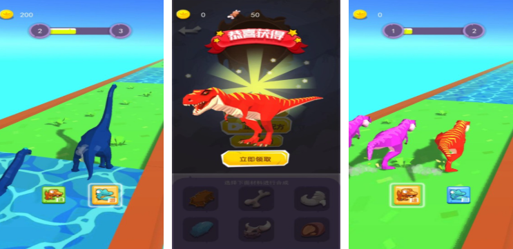 合成大恐龙以轻松休闲的合成玩法为核心,搭配丰富的恐龙养成元素,成为适合碎片化时间体验的轻量级游戏,游戏的核心机制围绕相同等级恐龙的合成为主,玩家将两只等级一致的恐龙放置在培育场中,即可触发合成动画,随着等级提升恐龙的外形会发生显著变化,属性也会随之全面提升,解锁自动收集资源、加速合成等实用能力。