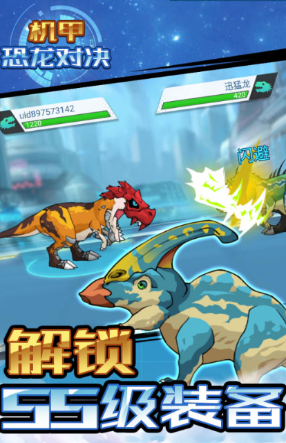 这款游戏将恐龙与机甲元素结合,风格酷炫十足,恐龙的身体被赋予了高科技机甲装备,外形极具冲击力,技能特效华丽亮眼,玩家可以和其他玩家进行实时对战,操控机甲恐龙在战场上展开激烈交锋,不同的机甲恐龙有着不同的攻击方式和防御能力,玩家需要根据对手的特点制定策略,和队友默契配合,发起猛烈攻击或组织有效防守,对战节奏紧凑,每一次碰撞都充满激情,能让玩家感受到热血沸腾的竞技体验。