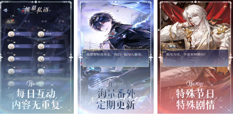 月影别墅是款很适合少女们体验的多段式剧情恋爱养成手游,但玩家所扮演的角色并非主角而是一个女配角,内容容易上手且有着犹如小说一般的剧情,轻松愉快的恋爱环境营造更是本作点睛之笔,大量立绘超帅的帅哥出现等待着与单身女生一起谈恋爱,展现出欧洲贵族风格的世界观提供了更完善的体验。