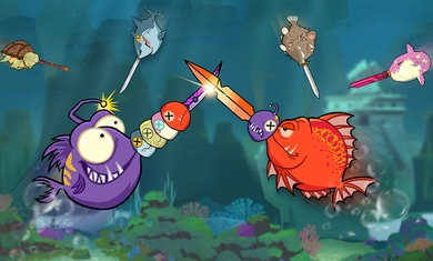 一个休闲类生存竞技类手游,虽然游戏的核心还是吞噬比自己弱小的鱼类,但是加入了对战元素,每局会有几十名玩家同时进入游戏,而且加入了武器和技能系统,玩家操控的鱼类头部有剑、长矛等武器,而且场景中有战争迷雾和复杂的地形,小鱼也可以利用各种战术击败大鱼,使得游戏中的吞噬对战更加刺激。